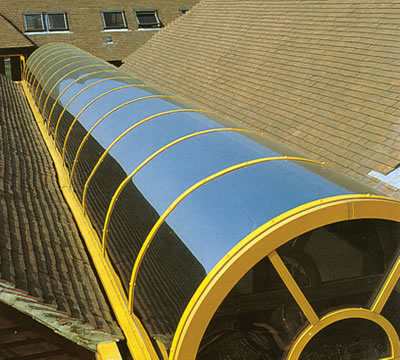 | Madico Designer Series reflective films are coloured both sides and are suitable for exterior use and situations where internal access is difficult. This is particularly useful when treating double glazed sealed units, tinted and patterned glass, especially rooflights. Performance Madico Duralux™ long-life exterior films offer maximum heat rejection, blocking and reflecting the incident solar energy before it penetrates the building’s fabric . To keep your building cool by means of a metallised film on the outside is far more efficient than letting in and then applying mechanical cooling, i.e. air-conditioning. Prevention is better than cure! The Climate Change Levy Tax, in addition to actual fuel costs, means that all reasonable measures to reduce energy consumption have assumed a priority with business. One such measure is externally applied solar control film. These films also offer greater glare reduction for staff comfort, whilst still making use of daylight as a source of illumination.Many modern office developments and business units experience severe solar gain problems due to the heat absorbing qualities of tinted glass. Externally applied film is often the most practical solution, reflecting the sun’s heat away from the outermost surface of the glass before it is absorbed. |
