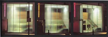 | Applications Lumisty applications typically fall into four main categories: retail or exhibitions displays, active graphics, privacy/security screening and view control/modesty on glazed balustrading and walkways. Retail displays Lumisty is used to enhance the eye-catching appearance of shop window displays in a wide variety of retail sectors. The view control film can be added to an existing display or can be combined with special lighting effects such as back projection when designing a brand new window dressing. Active graphics and logos For window graphics that appear and disappear as you walk by. Lumisty ‘active graphics’, either made from film or cut clear out of completely filmed panel are arranged so that the design is apparent from one viewpoint but invisible from another, lending much greater impact to the communication of your message or logo. Privacy and Security The optical performance of Lumisty lends itself to many requirements of privacy and security. Typical applications include reception and security areas and offices handling financial and other sensitive information. | View control and modesty Lumisty is the ideal product to provide screening just where it is needed, for example on stairwell or elevated walkway glazing. A typical requirement is to obscure a given line of vision for modesty and for the benefit of vertigo suffers.Lumisty appears the same, at any given angle, to viewers both sides of the glass, and does not privilege either with one-way privacy effect. However, by selecting the correct film type, it is possible to introduce the required vision control in many different situations. Lumisty is applicable on glass, acrylic and polycarbonate sheets. Single-ply Lumisty has one view control film. Double-ply Lumisty has two view control films and provides a wider invisible range than single-ply lumisty. View control In the translucent areas, Lumisty diffuses transmitted light and offers excellent invisibility. The total light transmission in the translucent area is the same as in the transparent area (88% approx.). |